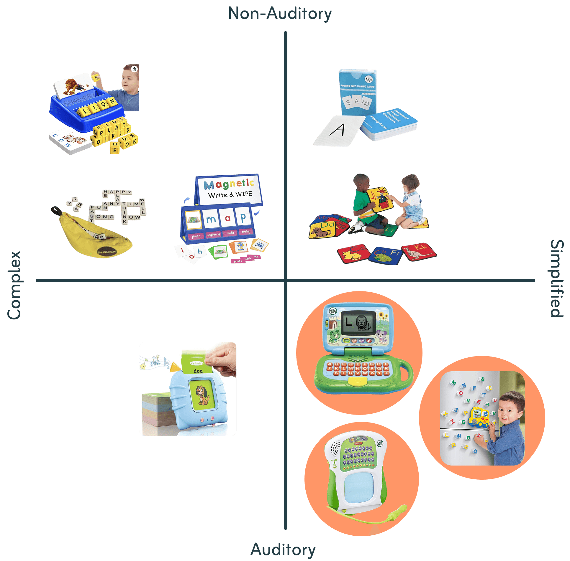 It can be seen that the toy market lacks phonic awareness toys that cater to the most effective methods for teaching kids with dyslexia.